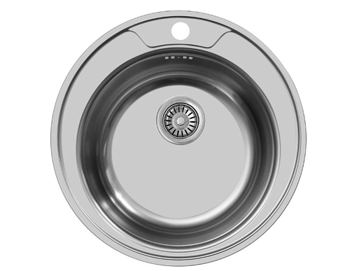 Кухонная врезная мойка с круглой чашей. Подходит для тумб от 50 см. У чаши есть шумопоглощающая накладка по всему диаметру мойки. Площадка под смеситель по центру чаши в верхней части, выпускается с переливом для воды в чаше