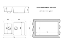 Квадратная мойка Vivat 465021 1Ч с одним крылом и одной чашей. Подходит для тумб от 50 см